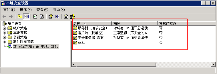 2】如下图所示,查看是否配置并启用了相关IP安全策略规则
